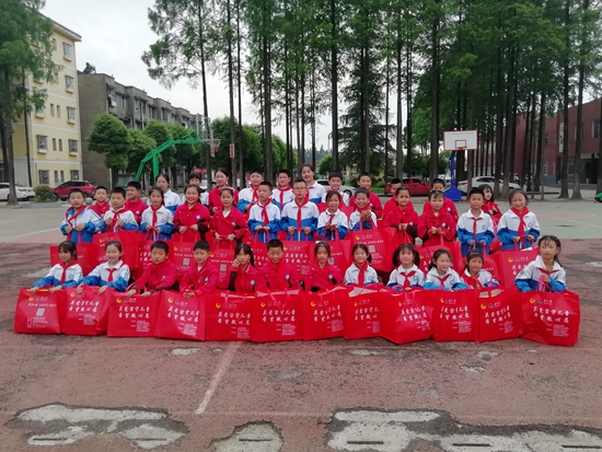 潜江市竹根滩镇小学组织“微心愿礼包”发放。