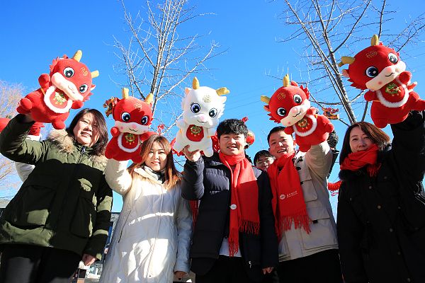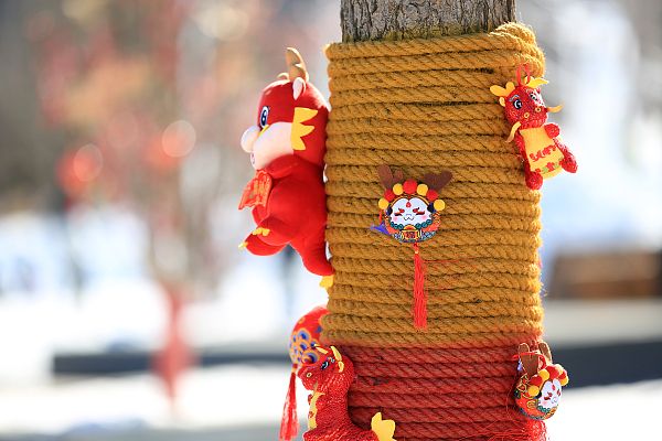 2024年1月24日,北京,游客在怀柔慕田峪长城布置好的春节灯笼长廊游玩。为给广大游客营造欢乐喜庆的新春节日氛围,慕田峪长城景区主要节点挂起了红灯笼、龙生肖等红色饰品,喜迎新春佳节的到来。