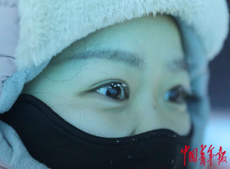 1月24日,哈尔滨冰雪大世界,一名游客睫毛上的冰渣。中青报·中青网记者 陈剑/摄