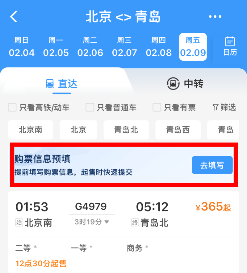 无需像以前必须等到车票发售的时候才能选乘车信息