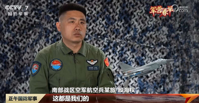 南部战区空军航空兵某旅 殷海权:我的名字里面本来就有一个“海”,可能执行任务相对比较多,后面就是到南海,再执行任务,当时我们跟外机的距离在一起可能也就是十几二十公里,对峙他。那我们就是说不惹事、不怕事,对于我来说可能没有更多地去缠斗,但是我就对着他,他对着我,我们可能平边飞行,你不能再过来,你过来就是对我一种侵犯,那我可能不是说对你不客气,我肯定按照原则我怎么去处置。(最后)出海域可能也比较远,对峙时间就比较长,我们用恰当的、正规的、合法的处置手段,合理地把他们规避走了,我们自己再回来。