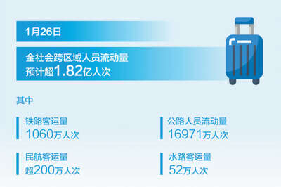 1月26日,2024年春运大幕拉开。当日全社会跨区域人员流动量预计超1.82亿人次,其中全国铁路预计发送旅客1060万人次,公路16971万人次,民航超200万人次,水路52万人次。“铁路空水”密切合作,智能技术广泛应用,旅途服务贴心温馨……各方协同,保障旅客安全顺畅出行。
