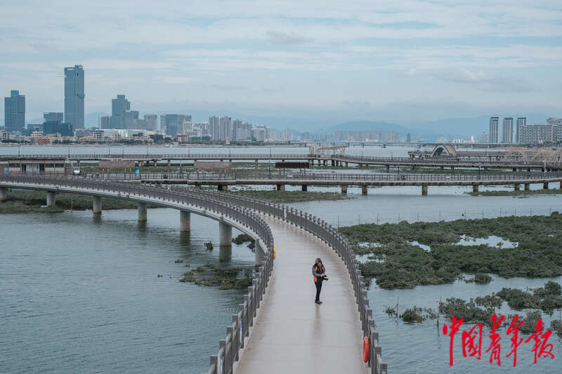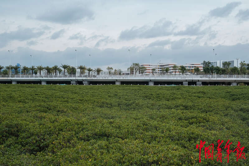 1月23日,福建厦门,下潭尾红树林公园,茂密的红树林景观。因历史上的围垦和无序养殖等人类活动,这里的湾区河水和海水曾污染严重,导致下潭尾原生红树林遭受严重破坏,生态系统急剧退化。20世纪90年代以来,厦门市开展红树林保护和恢复种植工作,逐步形成广泛分布于海湾湿地及城市公园的红树林种植带。如今,下潭尾红树林公园已成为抵御台风、风暴潮等海洋灾害的绿色缓冲带,保障了沿海地区居民的生命财产安全,同时提升了周边人居环境质量,成为市民休闲娱乐的景点。中青报·中青网记者 张玉佳/摄
