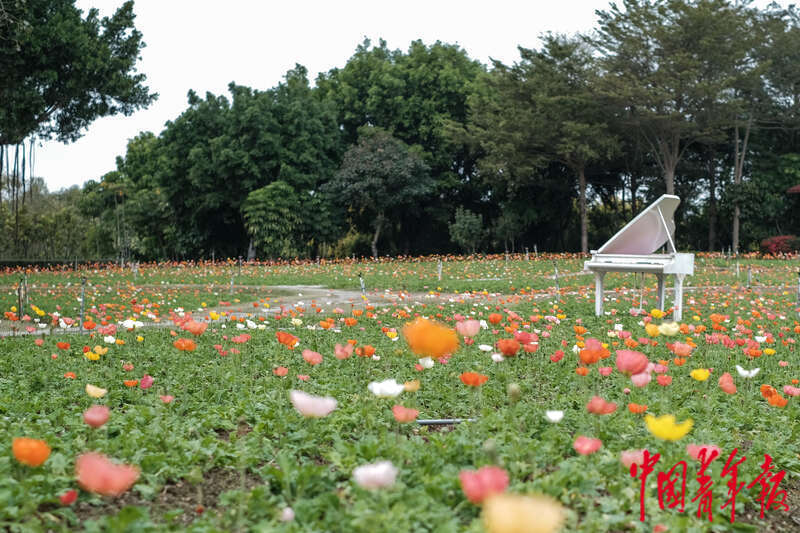 1月25日,福建厦门,园林博览苑内的虞美人花园。园林博览苑位于杏林湾水域,是第六届中国国际园林花卉博览会的举办地,涵盖园林花卉、休闲旅游、自然生态等内容,拥有近10个特色园林建筑,并建设了生态小岛,为国家二级重点保护野生动物紫水鸡提供栖息环境。每年冬季,园博苑水域成群的越冬鸬鹚和凤头潜鸭形成独特的生态景观。中青报·中青网记者 张玉佳/摄