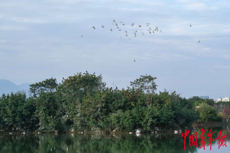 1月24日,福建厦门,马銮湾生态三岛公园,成群的白鹭盘旋在天空。经过生态修复后的马銮湾片区为鸟类提供了舒适的生活环境,近145种野生鸟类在此越冬或栖息繁衍。中青报·中青网记者 张玉佳/摄