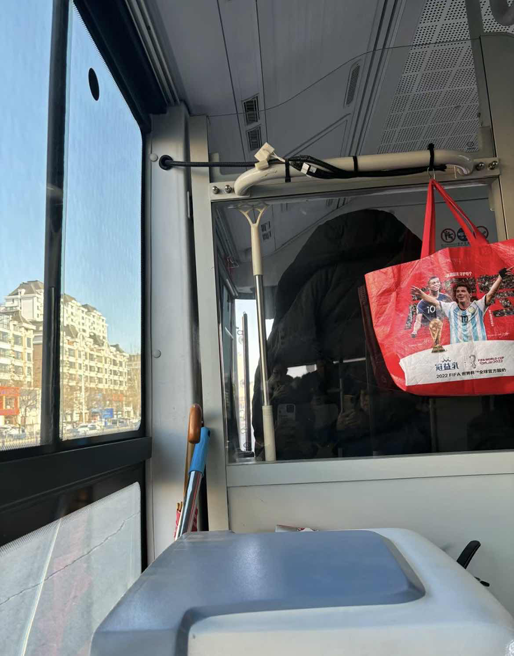 让我意外的是,这里途经村子的公交车上配套设施很好,座椅上有专门的坐垫。这让我想起网友给我起的外号叫“中华铁腚”,形容我长时间“无痛”坐公交车,所以,遇到这样的公交车对我来说,也是很幸运的。