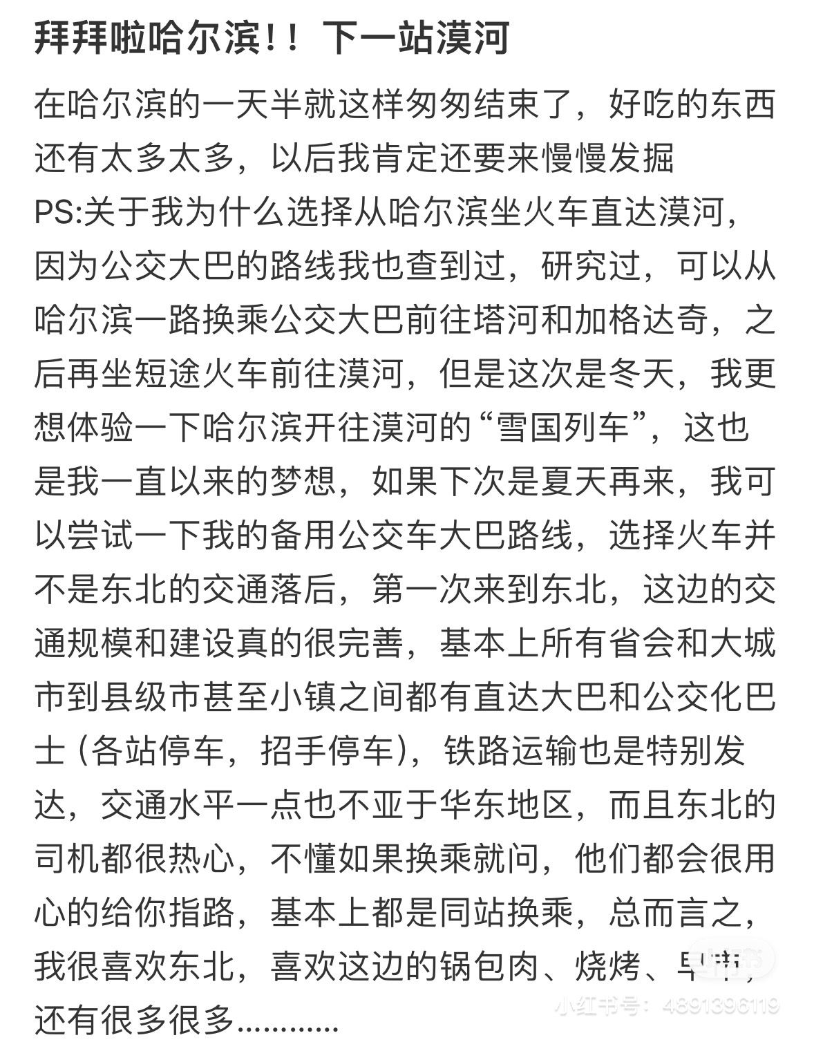 换乘火车前往漠河时,他还特意发文解释,“这次是冬天,更想体验一下哈尔滨开往漠河的‘雪国列车’。这也是我一直以来的梦想。”