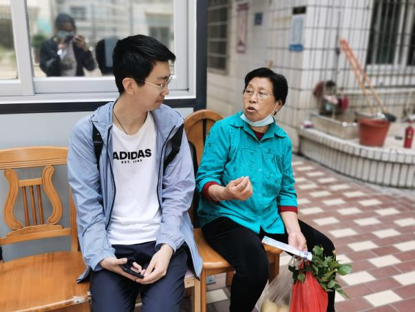 在社区工作期间,朱誉哲多次参与入户走访工作,跟随社区网格员姐姐进行走访调研,面对陌生人渐渐卸下羞涩,变得更加从容。