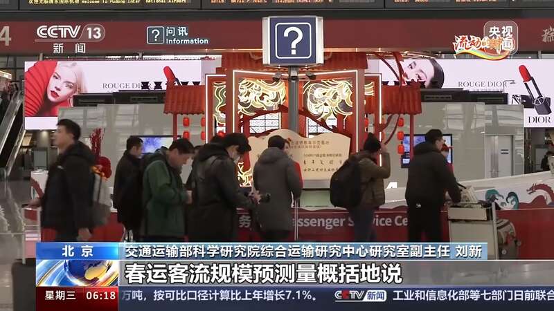 交通运输部科学研究院综合运输研究中心研究室副主任 刘新:春运客流规模预测量,概括地说,就是根据春运客流历史数据以及日常监测和统计的客流、小客车流量等数据,统筹考虑趋势变化规律测算得出的。
