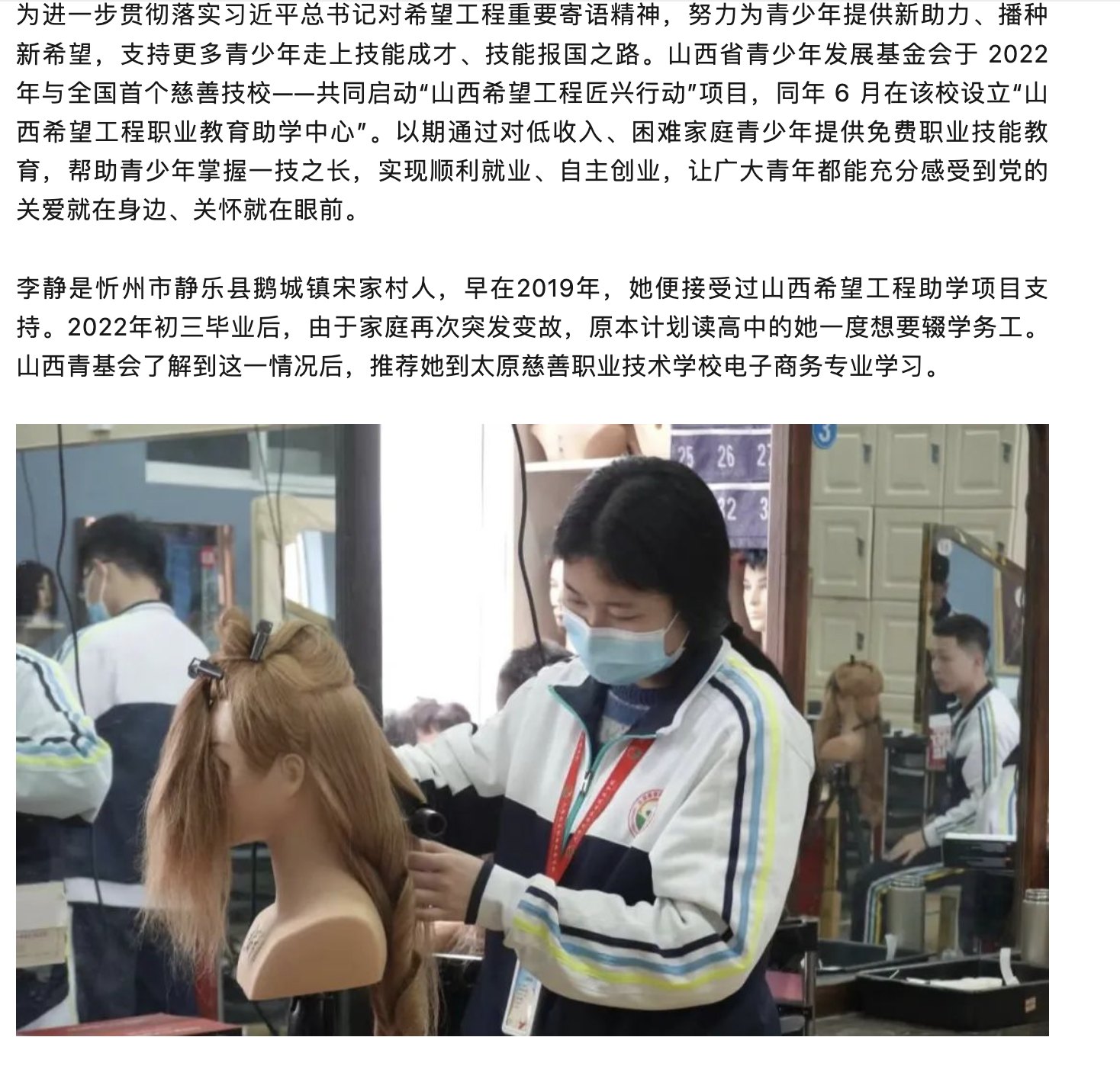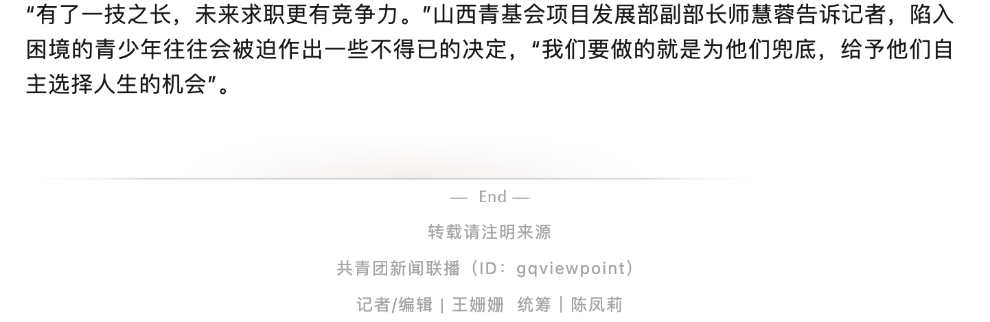 山西希望工程启动“匠兴行动”项目,通过对低收入、困难家庭青少年提供免费职业技能教育。