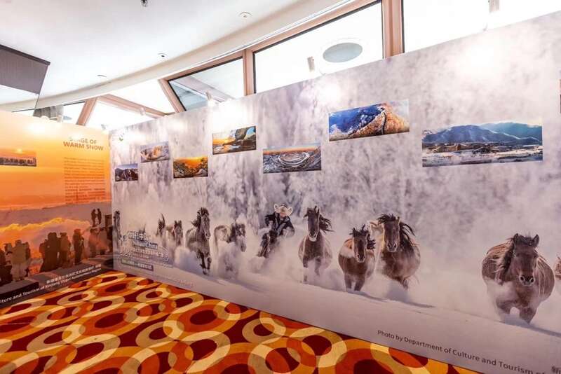 现场展出了由中外文化交流中心策划并制作“共续冰雪华章”主题展,分别以雪国浪漫、热雪舞台和冰雪国潮三个篇章展示北方冬季冰雪魅力,历史悠久灿烂的中国文化。