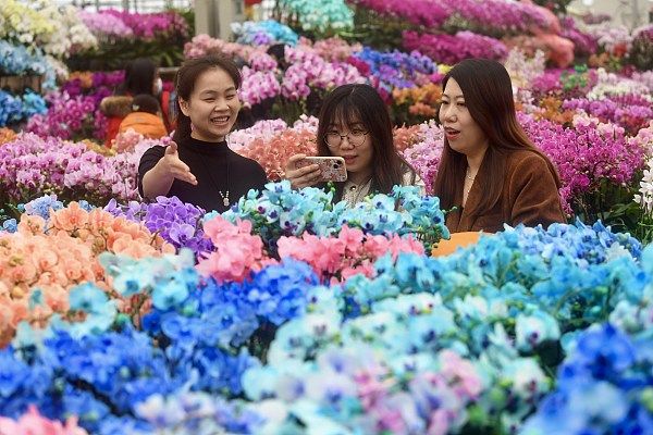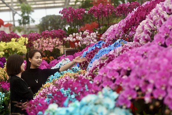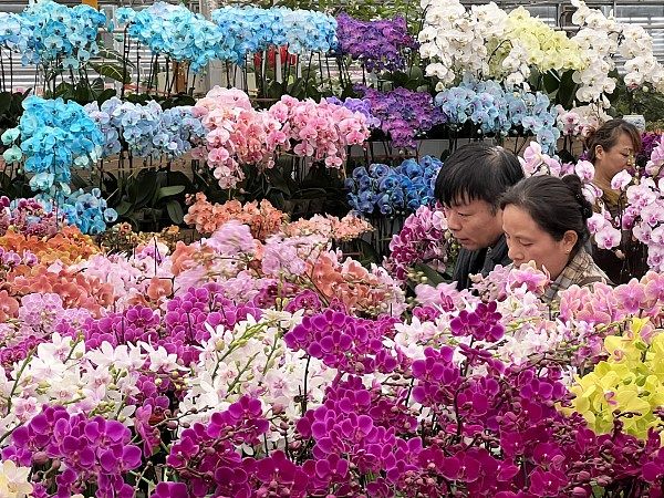 2024年1月30日,北京,黄土岗花卉市场备货充足,为广大市民带来氛围感满满的年宵花消费体验。