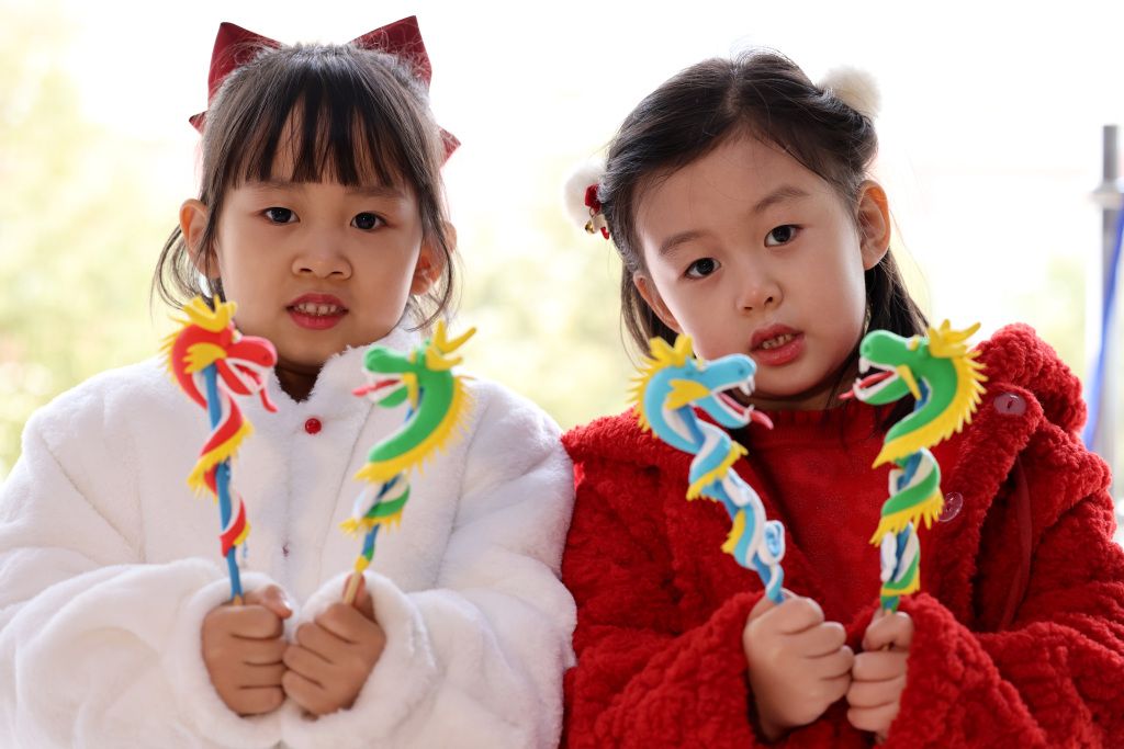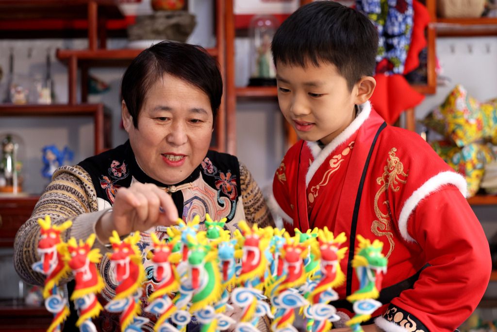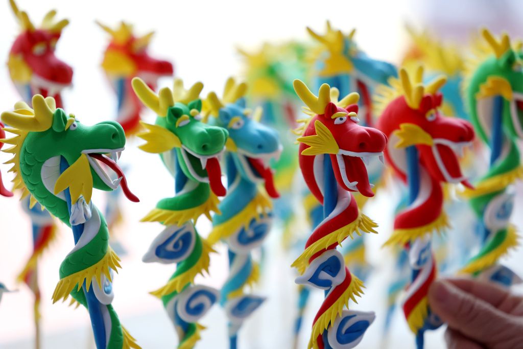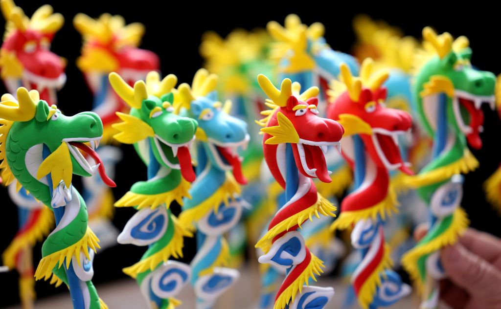 2024年2月1日,山东枣庄,龙山路街道民间艺人在工作室创作“祥龙”面塑作品。农历龙年将至,山东省枣庄市龙山路街道民间艺人创作以生肖龙为主题的“祥龙”面塑作品,形态逼真,憨态可掬,喜迎龙年。