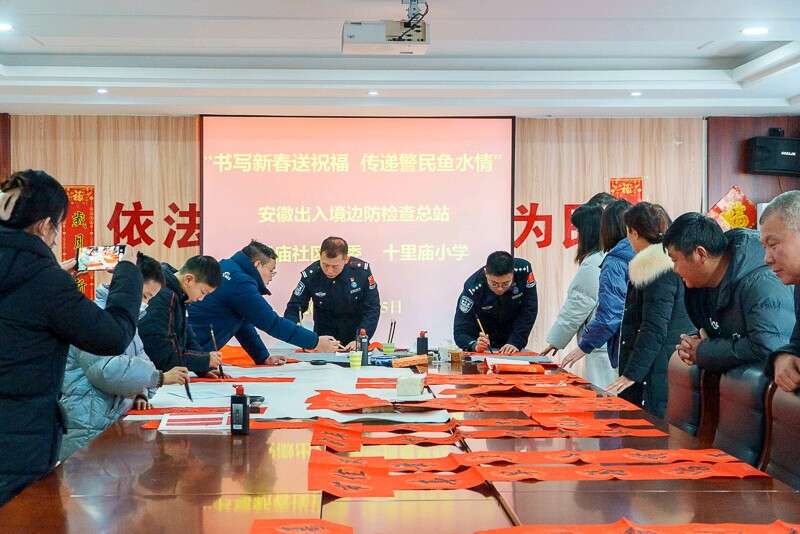 中国青年报客户端讯(徐红云 中青报·中青网记者 王海涵)“还是手写春联更有意义、更有年味!”近日,安徽省合肥市十里庙社区的居民们拿着墨迹未干的新春联,爱不释手。春节前夕,安徽边检总站“艺路铜行”工作室走进社区,开展“写春联、送福字”活动,民警们将一幅幅春联和福字送给服务对象和社区群众。