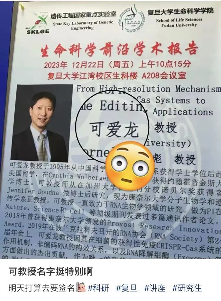 一个改论文的状态,让网友们认识了随和、有爱的安鲁陵教授。此前,一位名叫可爱龙的教授,因“名字过分可爱”走红。深入了解后才发现,可教授个人名字可可爱爱,“科研能力嘎嘎硬核”。