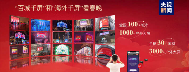 多屏传播,全景陪伴,满足多样化观看需求。总台以龙年春晚为契机,全面开启“央视频看电视”业务,全球用户可以更加便捷地收看春晚超高清视频,收听三维菁彩声。移动端直播“竖屏看春晚”通过5G场景下的移动拍摄、AI实时制作等技术,为用户提供更加丰富的竖屏内容。广大受众还能通过“百城千屏+海外千屏+云听”多平台同步观看、收听春晚直播。全国超100个城市的1000余块户外超高清大屏,全球六大洲34个国家、70座城市的3000余块公共大屏,将直播、宣介总台春晚。