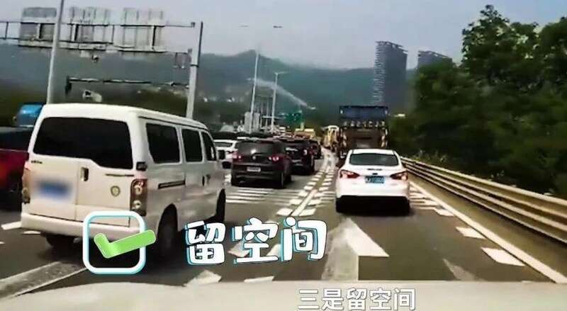 当遇到临时管控,需要跟车通行时,注意低速慢行,保持车距,不要随意变更车道产生新的拥堵。