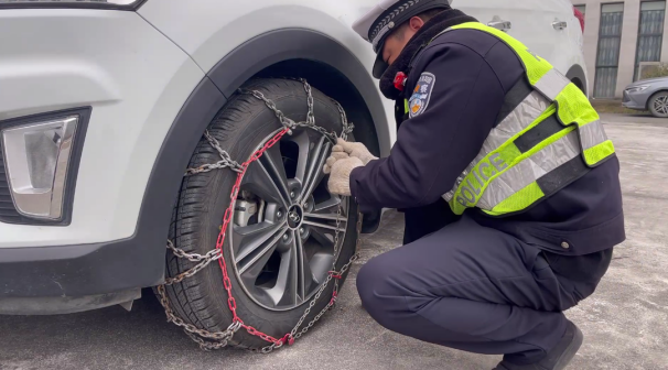 在冰雪严重的路面行车,防滑装备一定要备好,可以装上防滑链。