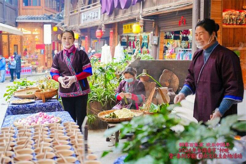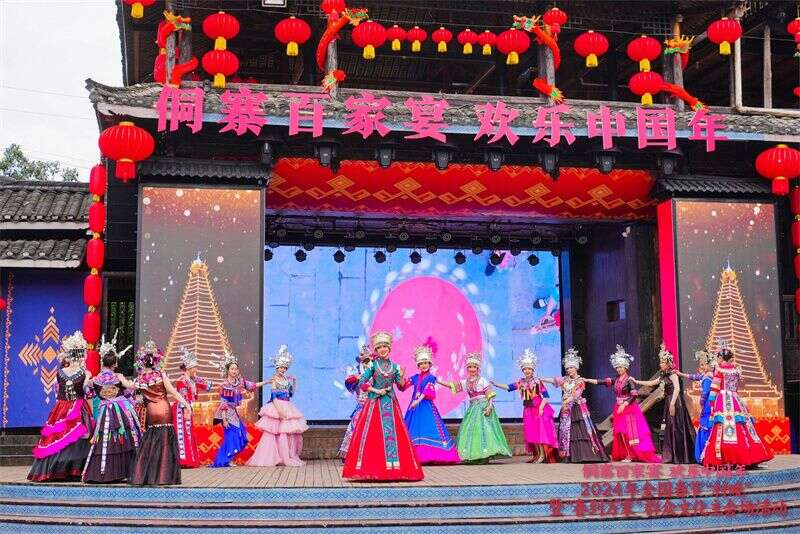 光明网讯(记者 庞聪)到中国最大的侗族文化旅游景区看“村晚”、吃百家宴、过大年。2月3日,以“侗寨百家宴 欢乐中国年”为主题的2024年全国春节“村晚”暨“春到万家”群众文化主会场活动,在广西柳州市三江侗族自治县林溪镇程阳八寨景区精彩上演,为广大群众带来一场“侗味”十足的“村晚”。