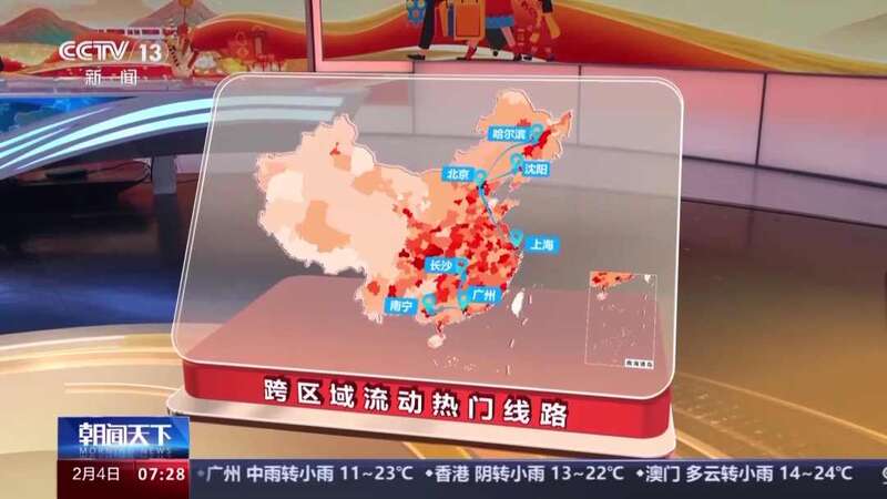 在热门路线当中,除了长三角、京津冀、珠三角、成渝等地区,还有长江中游城市群、滇中城市群、中原城市群等区域内的人员流动越来越密集。而跨区域流动的热门线路也在不断增加,广州至南宁、北京至哈尔滨、上海至北京、北京至沈阳、广州至长沙、北京至太原、深圳至长沙,它们已经成为这两天火车出行的热门路线,春运人员流动的范围在不断扩大。
