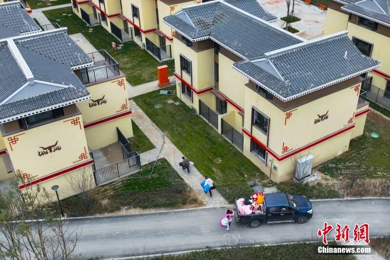 春节临近,四川省甘孜州泸定县磨西镇笼罩在暖阳中,距2022年泸定6.8级地震已近一年半。随着灾后重建的推进,震区民众生产生活已恢复如常。震中磨西镇和相邻的得妥镇,不少村民表示,搬进新家后对生活更有信心,对即将到来的春节亦充满期待。图为2月1日,泸定磨西镇一集中安置小区内村民正在搬新家。