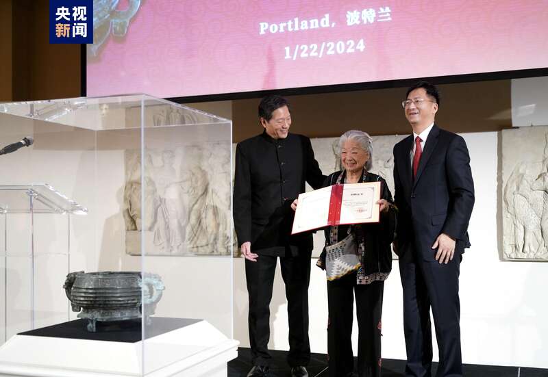我驻旧金山总领事张建敏代表国家文物局向雷蒙德·金及其母亲颁发捐赠证书,表彰其对流失海外中国文物追索返还工作的贡献。张建敏表示,流失海外中国文物承载着中国人民的历史情怀和文化记忆,是中国文化遗产不可分割的一部分。中美建交45周年之际,丰邢叔簋的回归是两国文化交流的重要成果,有助于加强中美友谊,并为全球文化遗产保护合作树立典范。