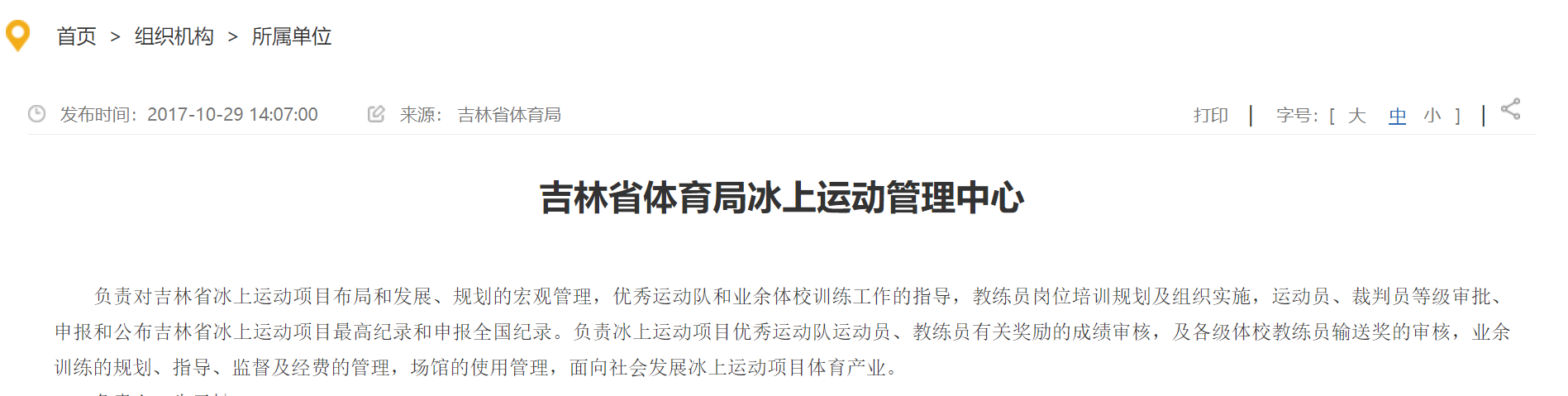 中青报记者在吉林省体育局官网了解到,冰上运动管理中心负责对吉林省冰上运动项目布局和发展、规划的宏观管理,优秀运动队和业余体校训练工作的指导,教练员岗位培训规划及组织实施,运动员、裁判员等级审批、申报和公布吉林省冰上运动项目最高纪录和申报全国纪录。负责冰上运动项目优秀运动队运动员、教练员有关奖励的成绩审核,及各级体校教练员输送奖的审核,业余训练的规划、指导、监督及经费的管理,场馆的使用管理,面向社会发展冰上运动项目体育产业。