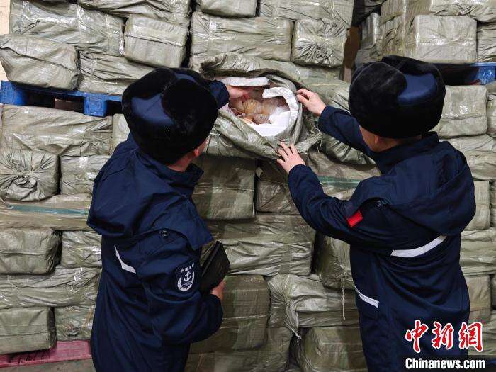 辽宁海警局查获38吨走私海产品。辽宁海警局供图
