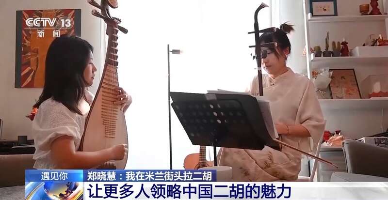 慢慢地,郑晓慧的街头二胡演奏在网络上被越来越多人关注,还引来了意大利当地媒体的采访。