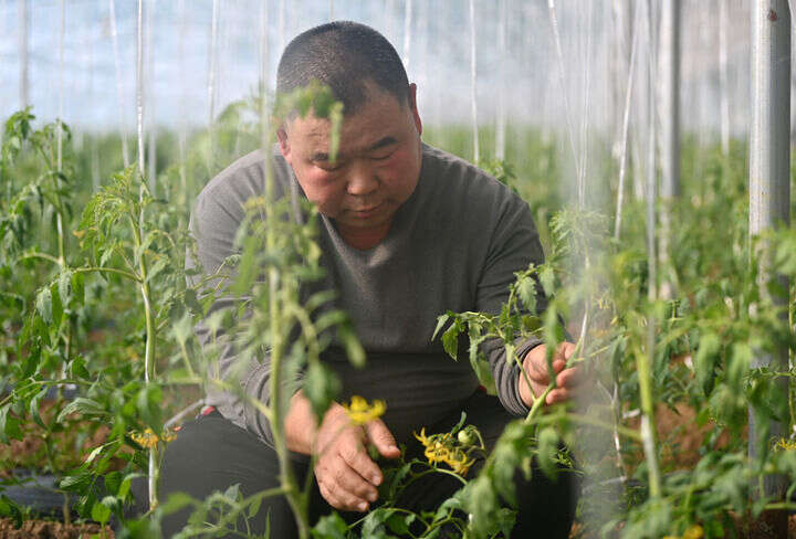 虽已立春,华北平原的风依旧带着寒意。踏进大六分村普泽家庭农场温暖的果蔬大棚,记者的眼镜片上瞬间蒙上一层雾气。