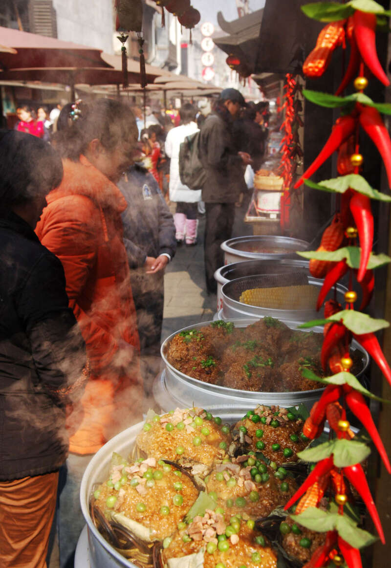 2006年1月29日,农历正月初一,浙江杭州河坊街热闹非凡,许多市民和游客都来逛街,欣赏民间艺人的绝活和品尝美食。