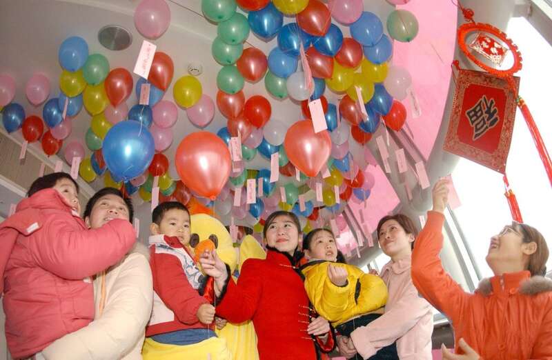 2005年2月9日是农历正月初一,一群登上上海东方明珠塔太空舱的游客,在卡片上写下自己的心愿,把美好的新春祝福留在城市之巅。