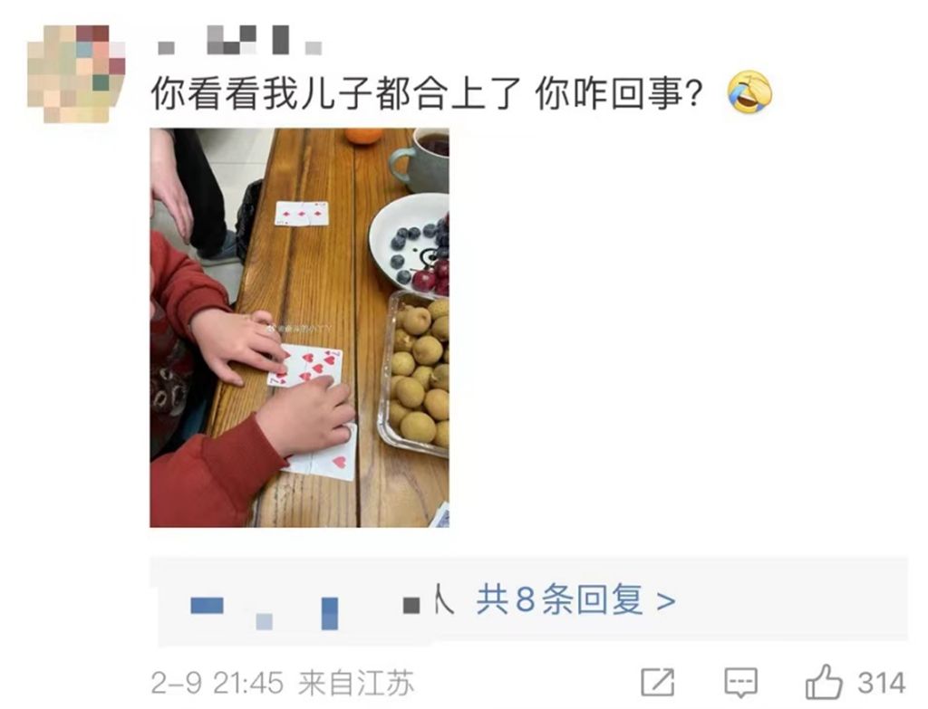 有网友说,第二个魔术纯粹是数学原理,只要按照固定的顺序筛选,就一定能拼成完成的牌。“太有意思了,这个魔术还能教我们数学原理。”