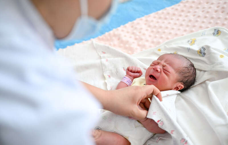 ↑这是2月10日在云南省红河哈尼族彝族自治州个旧市人民医院产科拍摄的一名刚出生的“龙宝宝”。新华社发(薛莹莹 摄)