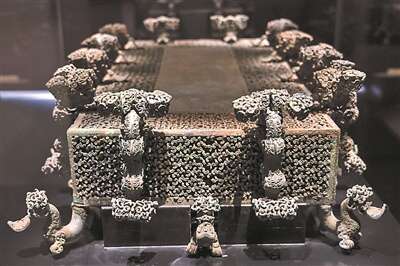 龙脊结构、龙腹纹则来源于最早记载“中国”二字的西周何尊侧面的四道扉棱和云雷纹,何尊出土于陕西宝鸡贾村镇,是3000多年前西周早期贵族“何”铸造的一件青铜礼器,尊体上篆刻铭文中“宅兹中国”,是目前所知“中国”一词的最早出现,这里的“中国”意思是“国家的中心”,体现出西周时期人们认为首都要建在国家中心位置的理念,也是中国古人居中而治的政治观表现。取何尊上云雷纹浮雕作为“龙辰辰”腹部标志性纹饰,将何尊上的扉棱解构为龙脊结构,以符号化表意“中国龙”的厚重历史。