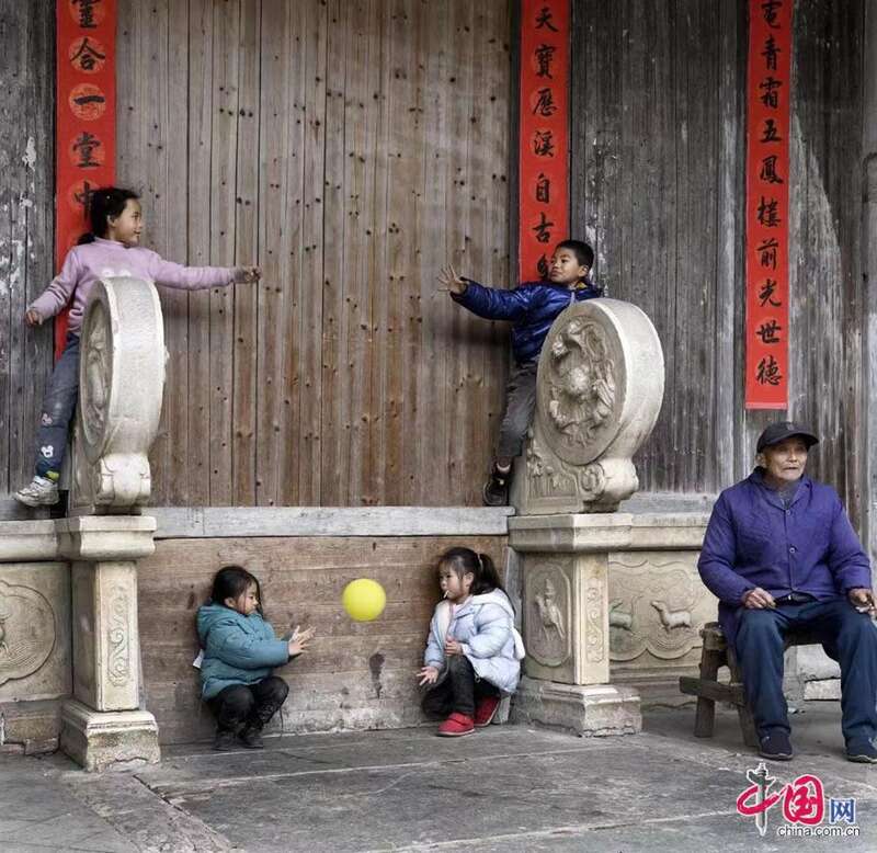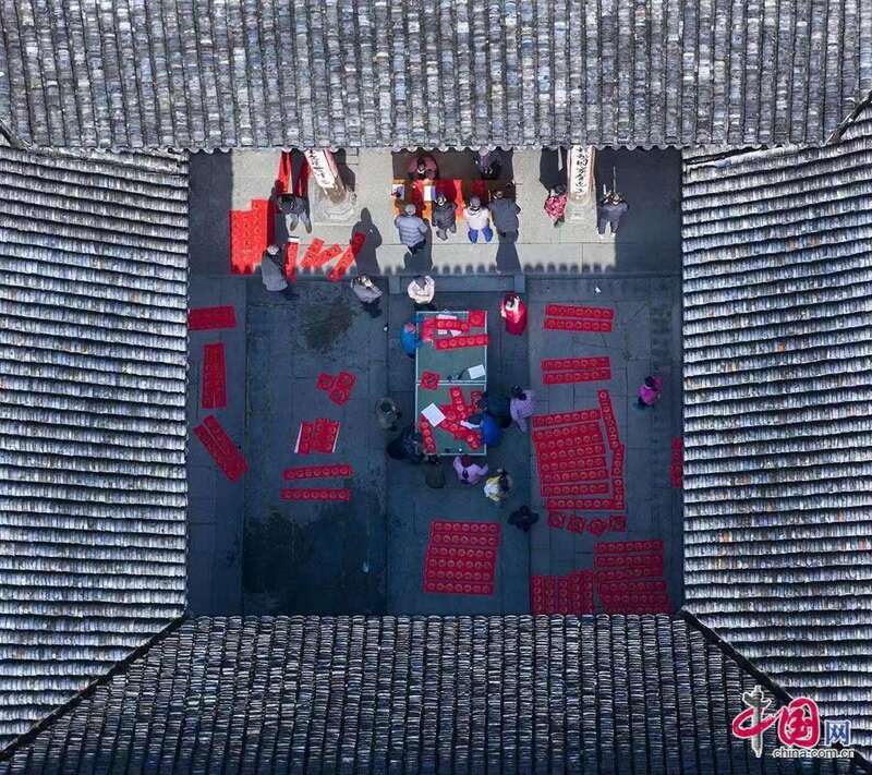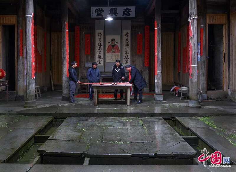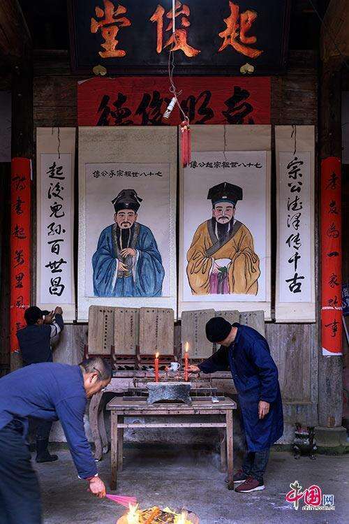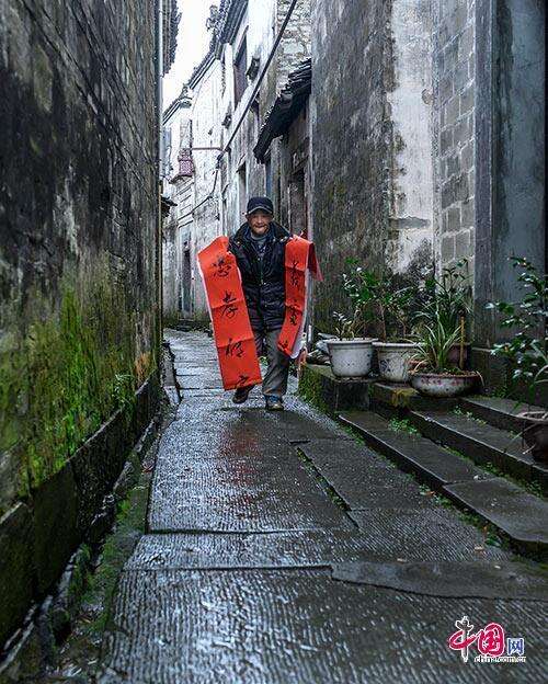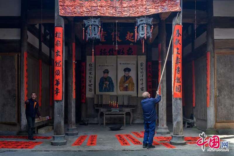 春节将至,国家级传统古村落黄山市祁门县彭龙村迎新春,贴春联,挂祖容。林坚摄影