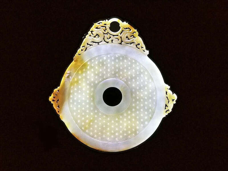 这块出土于东汉中山穆王刘畅墓中的古璧通高30.5厘米、直径24.4厘米、厚1.1厘米,由一整块新疆和田青玉雕琢而成,玉质半透明,表面温润,有明亮的光泽。它是我国目前所见最大、保存最完整的一块古代玉璧,以其精美、大气被视作“汉玉瑰宝”。