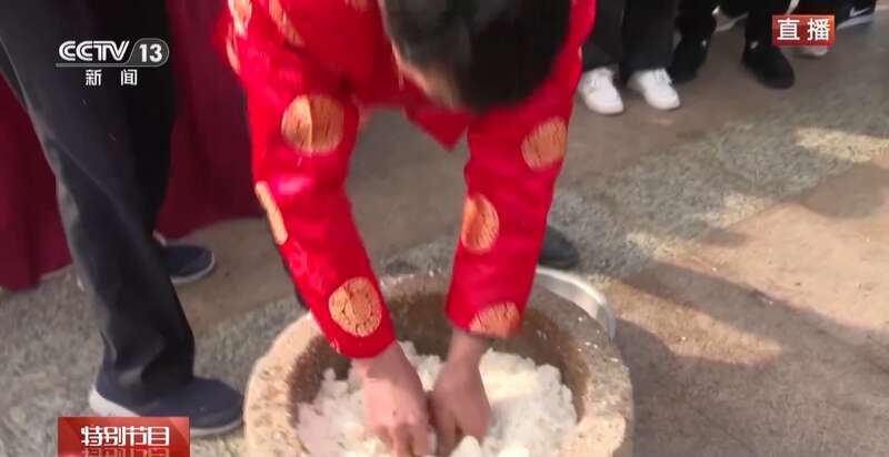 打年糕,当地人也叫搡年糕。年糕对于绍兴人来说,是浓浓的乡愁,也是年味的记忆。年糕寓意年年高,是大家的过年必吃。制作手工年糕是一项年味十足的仪式,把蒸好的糯米放进石臼里打,打年糕是门学问,也是一门技术,不到火候难成年糕,打得好,口感才细腻绵软。