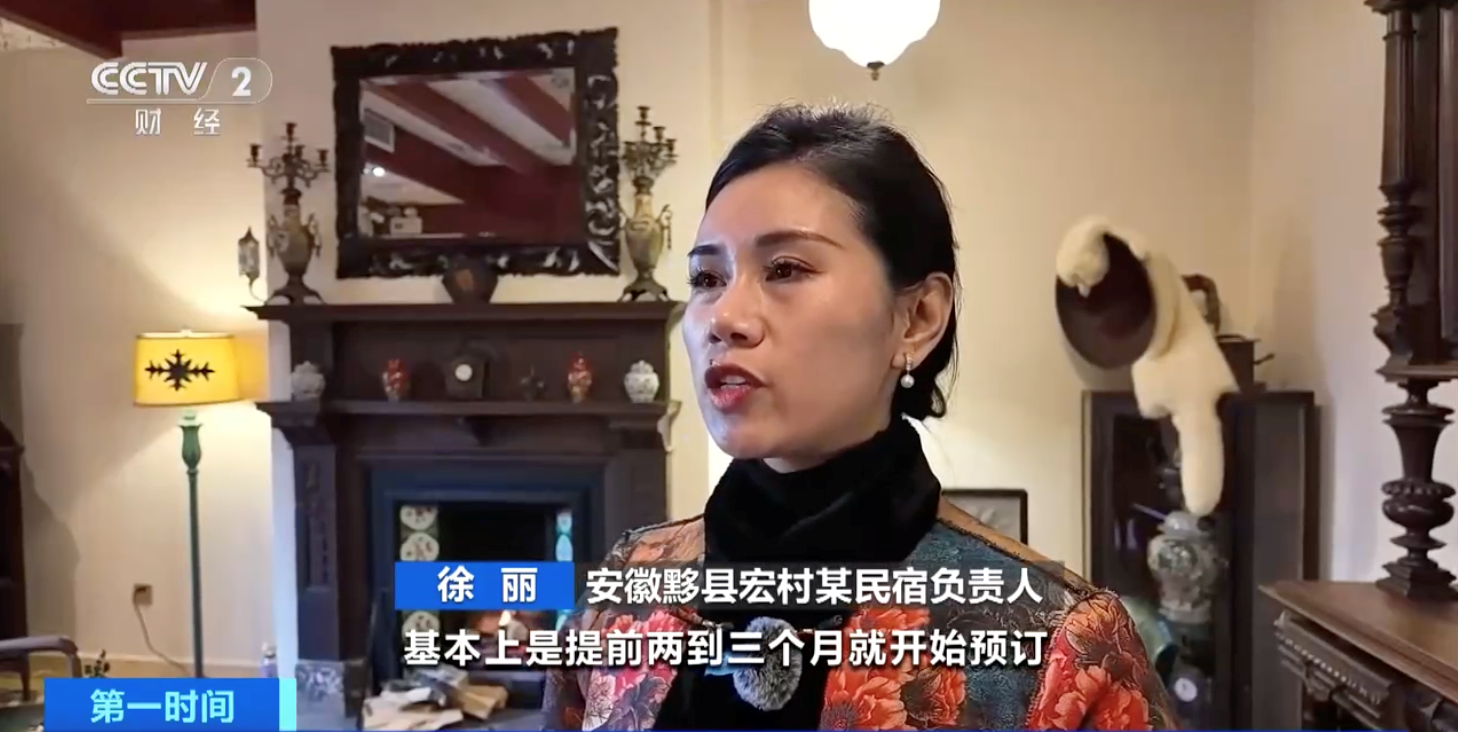 安徽黟县宏村某民宿负责人 徐丽:基本上提前两三个月就开始预订了,满房的状态是从除夕夜开始持续四天左右。