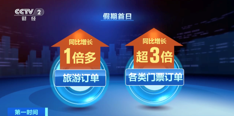 丰富多样的文旅活动,带动消费热潮。大数据发现了这样的变化,人们出行的脚步越走越远,1000公里以上的出行客流占比,由去年的3.3%提升到了3.7%。假期首日,旅游订单同比增长1倍多,各类门票订单同比增长超3倍。