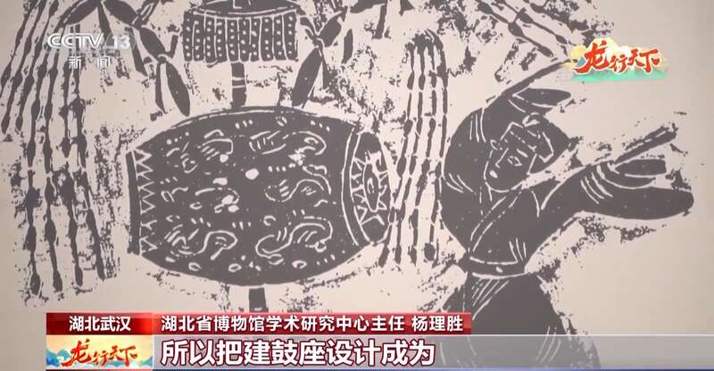 湖北省博物馆学术研究中心主任 杨理胜:鼓代表春天之雷,雷声起而蛰虫复苏。所以把建鼓座设计成为一个龙蛇的造型,上面有鼓的话,其实是代表一个春天阳气萌发了,万物复苏的感觉。因为鼓声一响,这个龙就惊醒了,就不再冬眠了。这个是代表冬去春来、百业兴旺的一种状态,给人一种非常澎湃的动力。