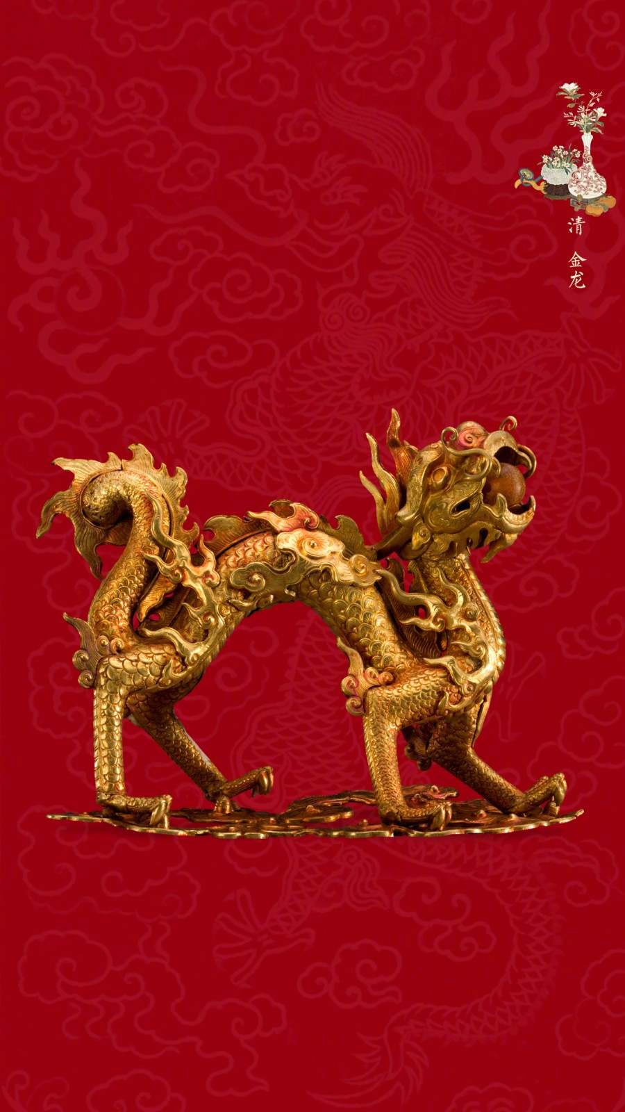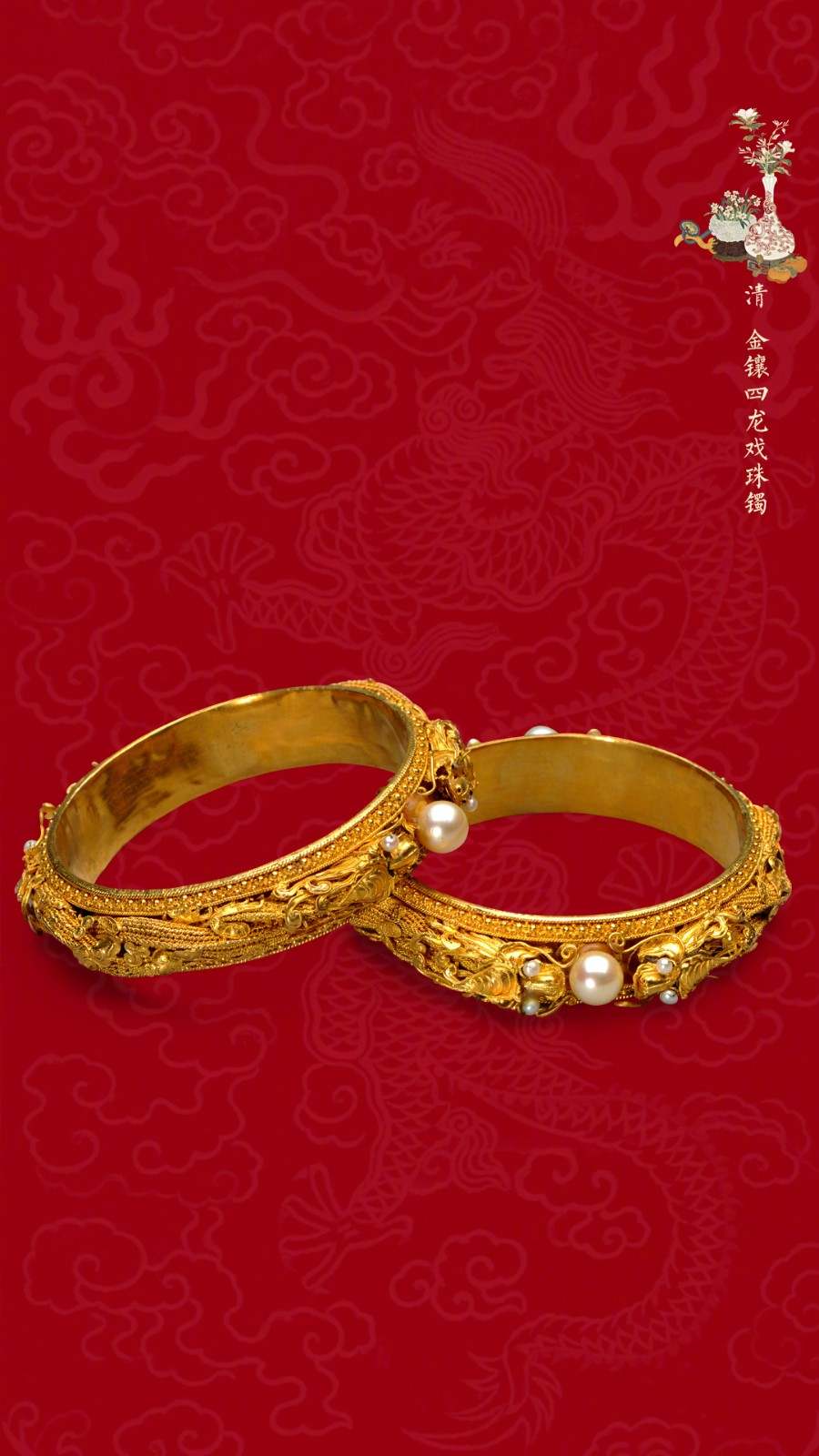 金器上的龙纹,闪耀着明亮的金属光泽。雕刻线条细密清晰,金龙珍珠搭配巧妙,光彩照人。大年初五,金光熠熠,“龙”光焕发!