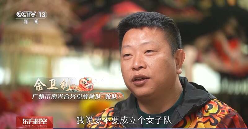 广州市南兴合兴堂醒狮队领队 余卫钊:那6个女孩子同时找到我、围住我,我说要不要成立个女子队。人靠一口气,人要面树要皮。然后就是魔鬼训练,不停地训练。