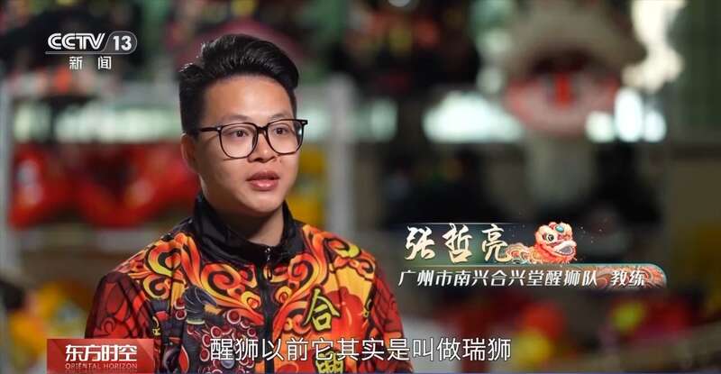 广州市南兴合兴堂醒狮队教练 张哲亮:醒狮以前其实是叫做“瑞狮”,表演的是人的情感。这个狮子会表演出很多神态。但是这个“瑞”在粤语里面,跟睡觉的睡是同音的。所以我们说“睡”不行,我们要把它“醒”起来 。