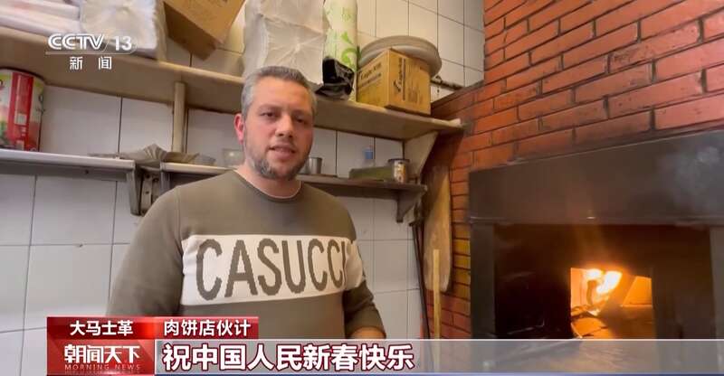 肉饼店伙计:我在网上看到很多中国科技,太棒了,有一种移动阳台,可以伸展,楼梯可以收起来,太令人惊叹了。祝中国人新春快乐,年年享有平安幸福,新年好。