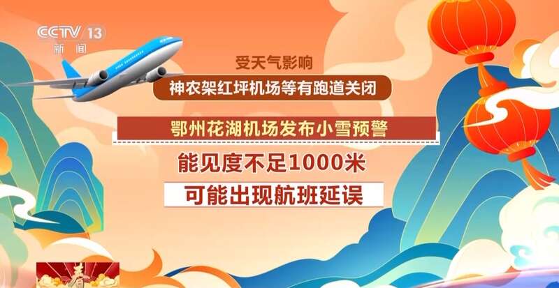 受天气影响,神农架红坪机场等有跑道关闭,鄂州花湖机场发布小雪预警,能见度不足1000米,可能会出现航班延误,有出行安排的旅客需要及时关注航班信息更新,以免耽误行程。