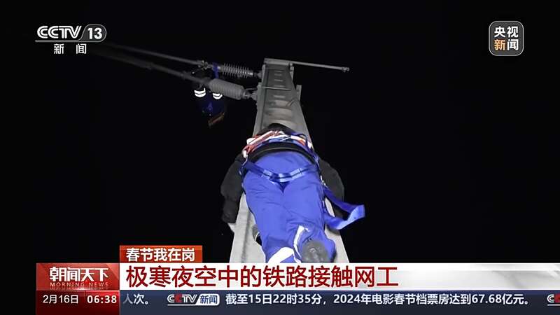 哈尔滨供电段哈尔滨供电维修车间接触网工 苏鹤蕊:冬天的时候可能上下睫毛会粘在一块,比较冷嘛,我们平常作业的时候,手里都拿着工具倒不开手,就得把眼睛使劲睁一下,让这个霜弄下去。
