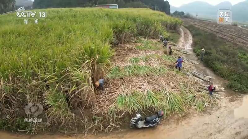 春节前,广西甘蔗进入收获期,甘蔗一砍下来,就要剥叶、捆扎,等待着送到糖厂制糖。霍佳丽家种了10亩甘蔗,每亩可以产甘蔗将近8吨。更让她高兴的是今年甘蔗的收购价格也比去年高。