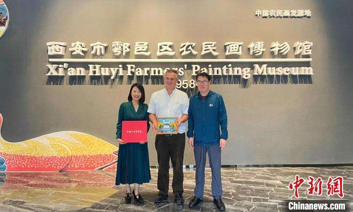 2023年8月,德国游客参观西安市鄠邑区农民画博物馆。(受访者供图)