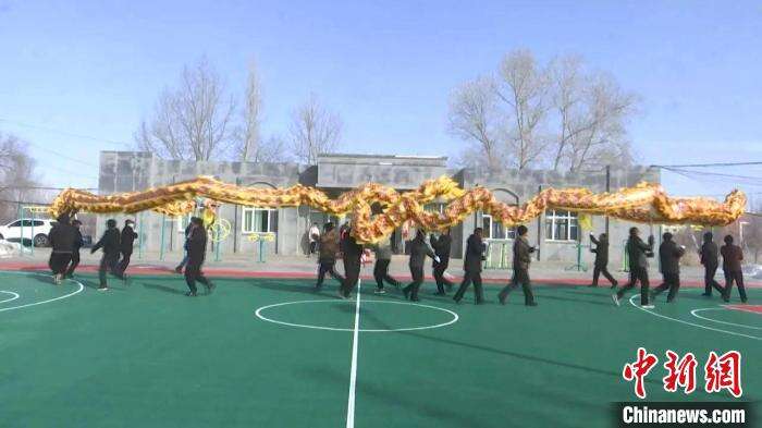 中新网乌鲁木齐2月17日电(陶拴科 石倩)连日来,新疆木垒县各乡镇锣鼓喧天,热闹非凡,群众排练春节社火,真正把农村文化活跃起来,村民在春节的氛围里沉浸式感受浓浓的年味。
